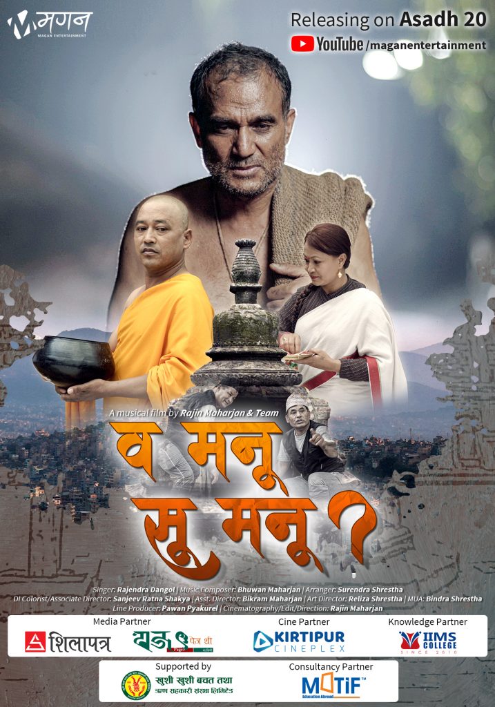 मगन ईन्टरटेनमेन्टया ब्यानरय् नेपालभाषया म्यूजिक भिडियो “व मनू सू मनू?” असार २० गते कीर्तिपुर सिनेप्लेक्स कीर्तिपुरय् प्रिमियर यायेत्यंगु दु । थुगु म्यूजिक भिडियोया निर्देशन व छायांकन रजिन महर्जनं याःगु खःसा किपू नगर दुने हे थुकीया सुटिंग याःगु खः ।