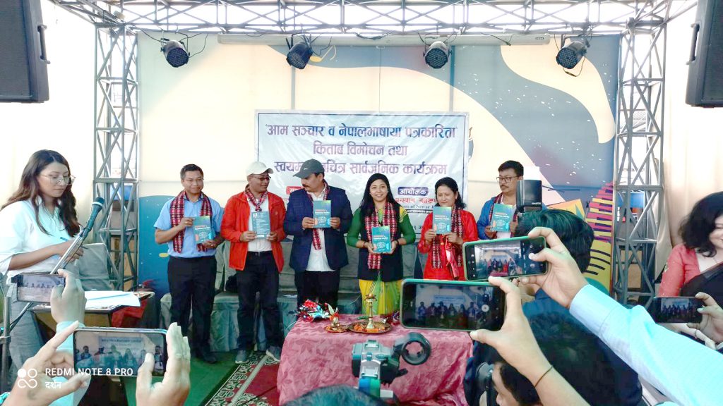 ज्याझ्वलय् राकेश महर्जनं च्वयादीगु “आम सञ्चार व नेपालभाषाया पत्रकारिता” सफूनं बिमाेचन जूगु खः । पत्रकारिताया विषयया नेपालभाषाया स्नातक तहया पाठ्यक्रमय् दुथ्याःगु थुगु सफू उप–प्रमुख डंगोललिसें पाहाँपिं सकसिनं मंकाः कथं चिखिफ्यनादीगु खः ।