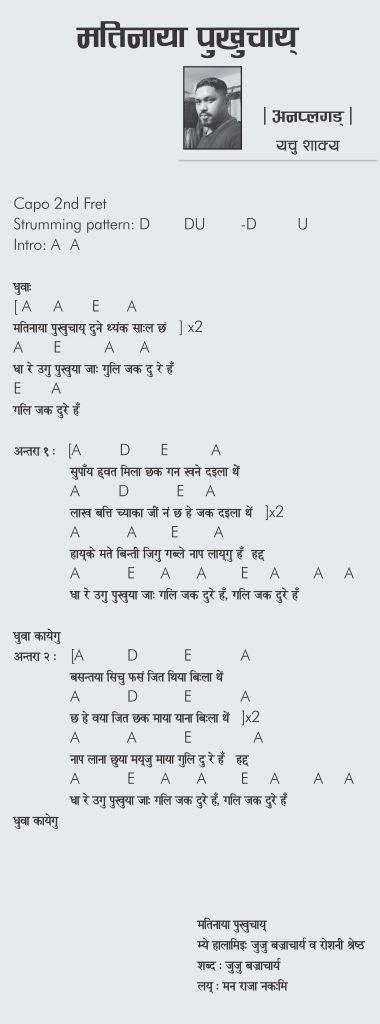 Chords Page3 मतिनाया पुखुचाय् By पेज थ्री / May 24, 2023 Share on FacebookTweetFollow us You may also like पेजथ्री पिपल्स च्वाइस अवार्ड ११४६ घोषणा By elohan / April 4, 2026 वीर प्रसाद भन्सारीया याकः सनिल जुइगु By पेज थ्री / March 18, 2026 क्यारेन शाक्यया चुलबुल चंचल भिडियाे By elohan / March 17, 2026 ‘जय बाघ भैरव’ म्यूजिक भिडियाेया प्रिमियर By पेज थ्री / March 14, 2026 किर्तिपुर सिनेप्लेक्सय् गंसीया प्रिमियर By पेज थ्री / March 1, 2026 Post navigation मछालेगु बानीमिखाया अजलं Leave a Reply Cancel replyYour email address will not be published. Required fields are marked *Comment * Name * Email * Website Save my name, email, and website in this browser for the next time I comment.