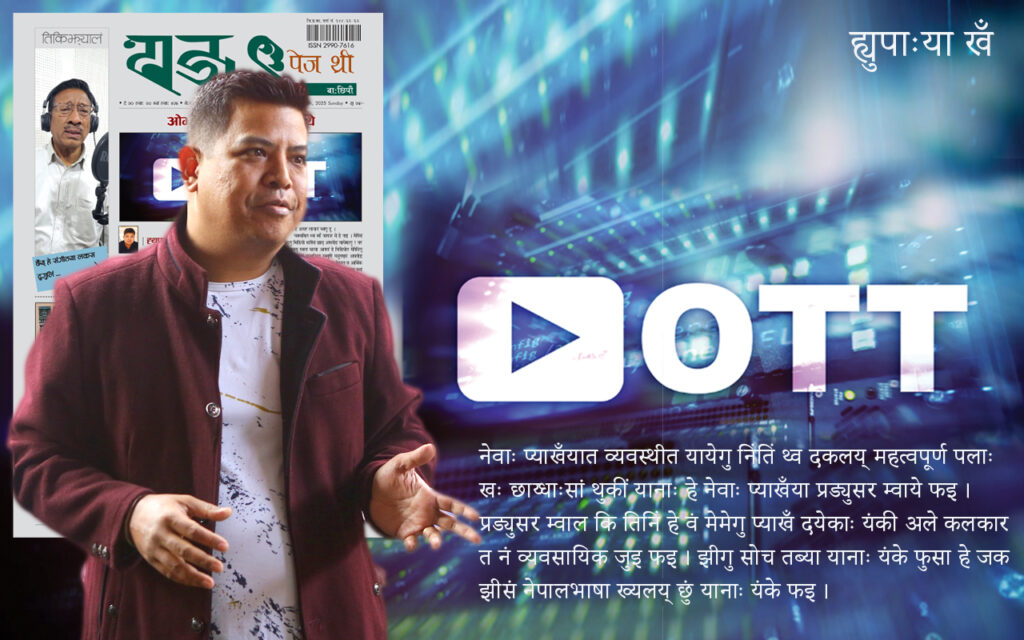 युट्युबय् कपिराइटया कारण आपलं हे प्याखँ बिच बिचय् संवाद वा ब्याकग्राउण्ड साउण्ड हे बन्द जुइगु याः । सुख मदयेक प्याखँ स्वयेगु सिबें थुकीयात गुगुकथं व्यवस्थीत यायेगु पाखे पलाः न्ह्याके माः । युट्युबय् प्याखँ स्वयाः १००,००० भ्यूज वनकि बल्ल तल्ल १०,००० निसें २०,००० तक ध्येबा वइगु खःसा ओटीटी च्यानल पाखें ग्राहक यानाः हे ध्येबा नं काये फइसा छगू प्याखँ जक स्वयेगु याःसां प्याखँ कथं ध्येबा नं काये फइ। थौंकन्हे थी थी ओटीटी प्लाय्टफर्मय् नेपाली प्याखँ स्वयेत नं २०० दां मू तयाःतःगु दुसा नेवाः प्याखँ स्वयेत नं थथे हे रकम तर छुं भचा म्हो यानाः तये फइ ।