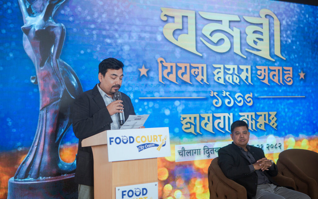 अथे हे वरिष्ठ पत्रकार विजयरत्न असंबरें थुज्वःगु अवार्ड ज्याझ्वः नियमित व चीहाकःगु अन्तरालय् ग्वसाः ग्वयेमाःगु खँ कनादिल । वय्कलं प्यदँ न्यादँया अन्तराल ताःहाकः जूगु धासें वइगु दिनय् अझ नियमित रुपं ज्याझ्वः ग्वसाः ग्वयेगु सुझाव बियादिल ।