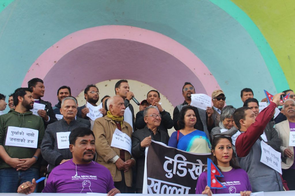 २०७२ सालको विनाशकारी भूकम्पको समयमा यो मैदान आम जनताको निमित्त शरण स्थल भइदिएको थियो । तर अवको स्वरूप यस्तो विकृत भइसकेको छ । हरेक ठाउँमा अव्यवस्थित हुँदै आइरहेको कुरामा एक समूह जागरुक जनताले अकुपाइ टुडिखेलको नाममा यस क्षेत्रको बचाउको निमित्र आन्दोलनरत रहेको छ । खुल्ला स्थानको संरक्षणको निमित्त यो सकरात्मक कदम हो । प्राकृतिक प्रकोप भनेको सुचना दिएर आउने होइन, त्यस्तो समयमा आम जनता आफू सुरक्षित हुनको निमित्त खुल्ला क्षेत्रको आवश्यकता महसूस गरिरहन्छ । त्यस किसिमको स्थान सुरक्षण हुनु पर्ने कुरामा विवाद छैन ।